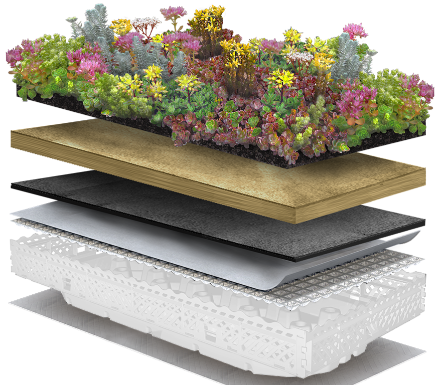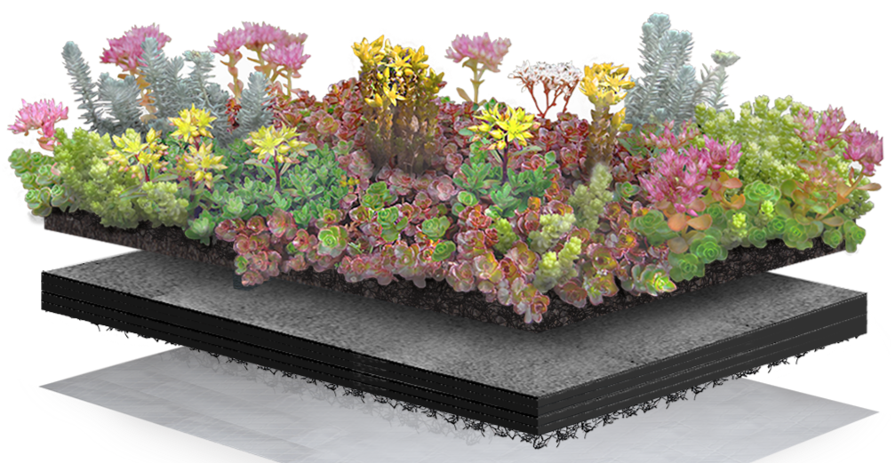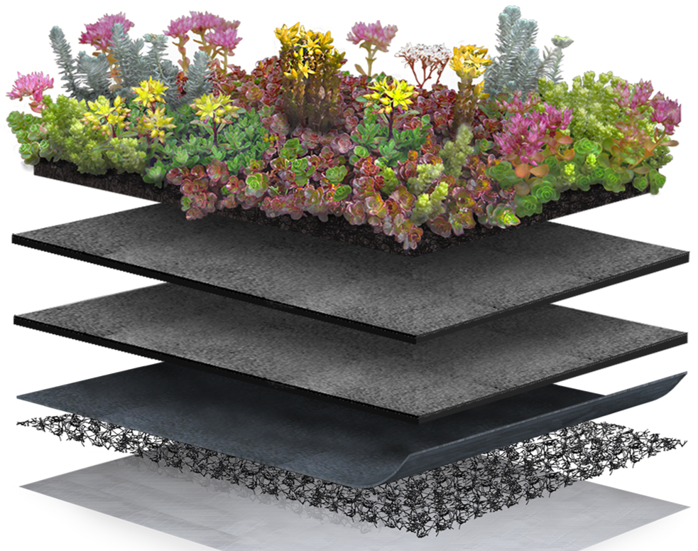 XeroFlor's green roof options include a range of lightweight systems from only 8-12 pounds per square foot to applications of 31 pounds per square foot. Our green roof assemblies can be used in basic flat roof applications as well as more dynamic roof structures - even on slopes up to 45 degrees. The flexibility of our systems means that we can customize to suit your project, whether it's a retrofit with a steep slope or new construction of any type.